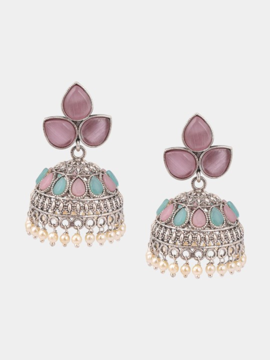 Brass-Plated Artificial Stones Studded Dome Shaped Jhumkas