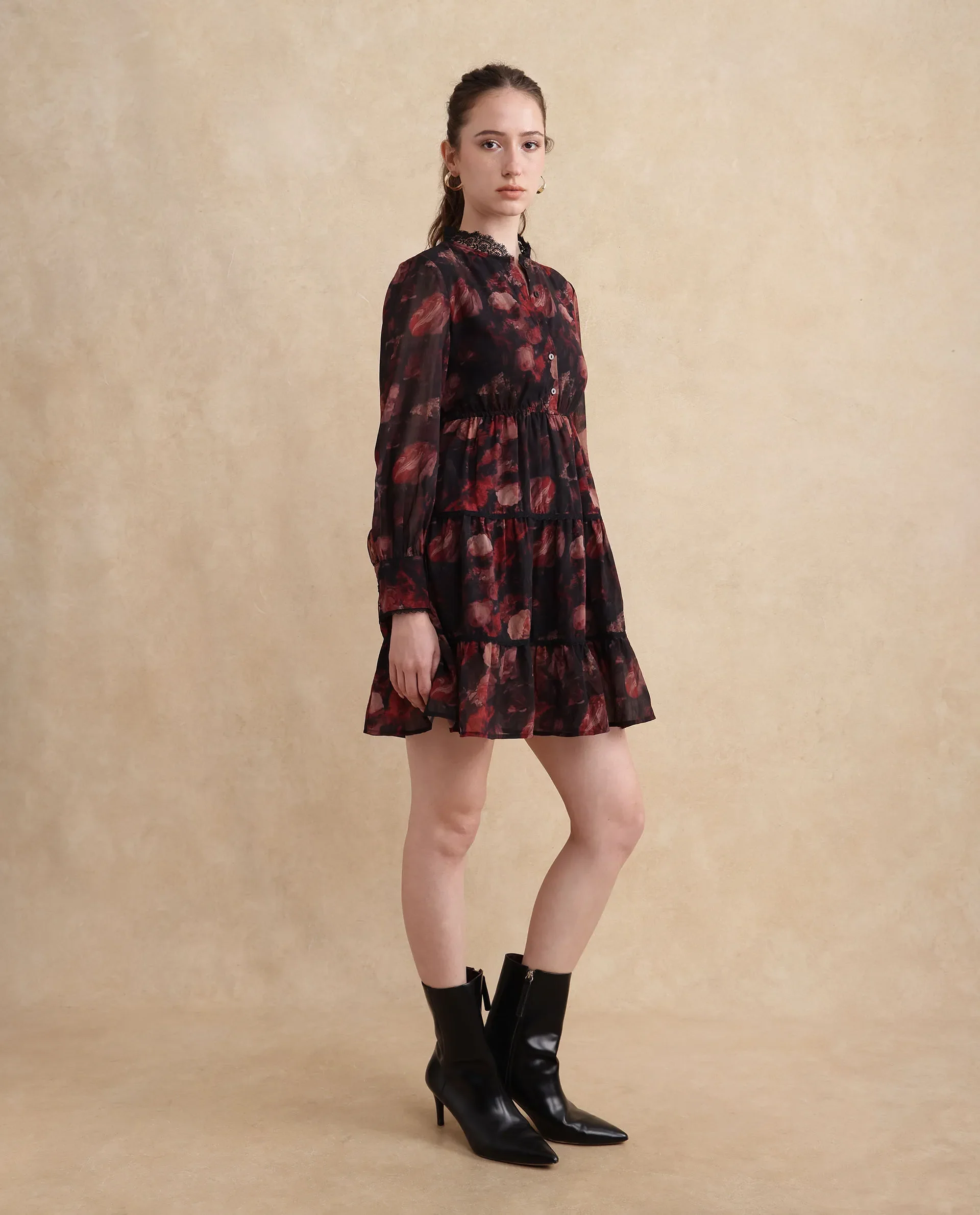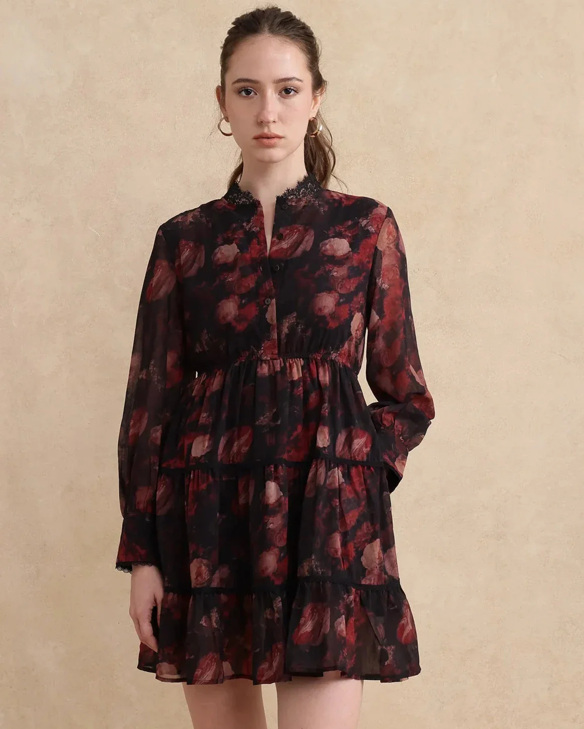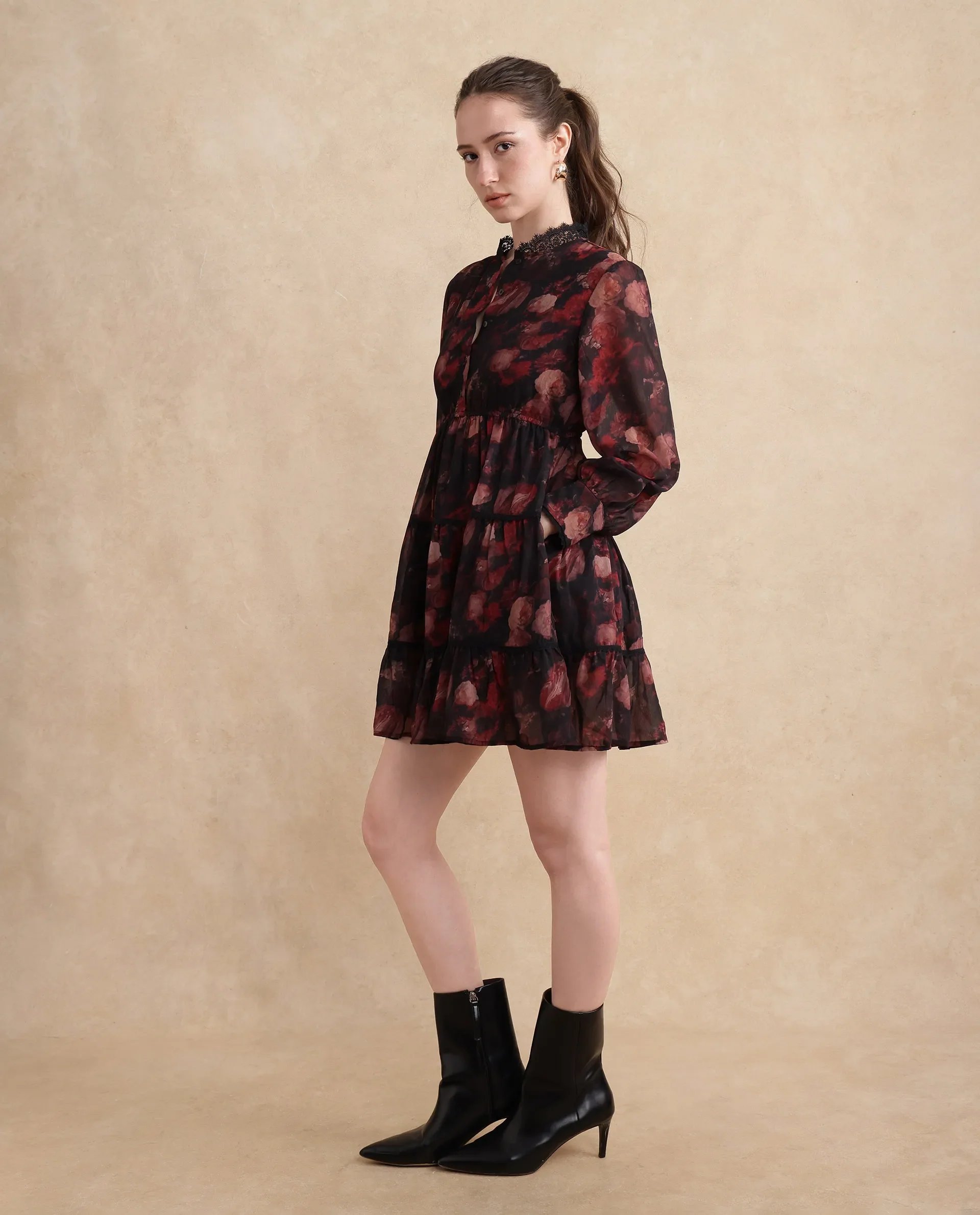 FLORAL PRINT MINI DRESS POPOE – DARK MULTI