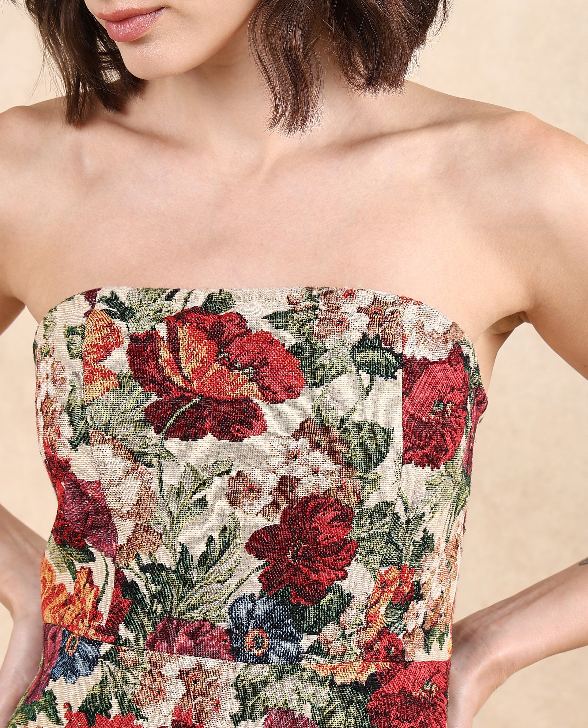 SHORT FLORAL JACQUARD DRESS YOLOR – MULTI