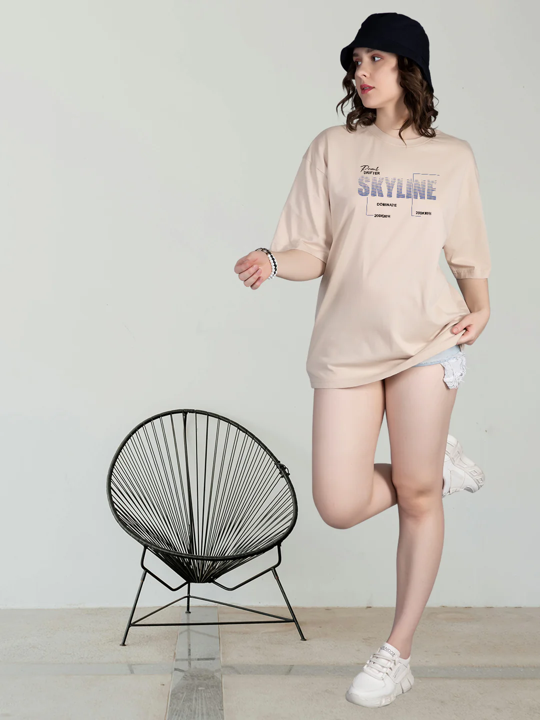 SKYLINE Women Graphic Printed Oversized T-Shirt